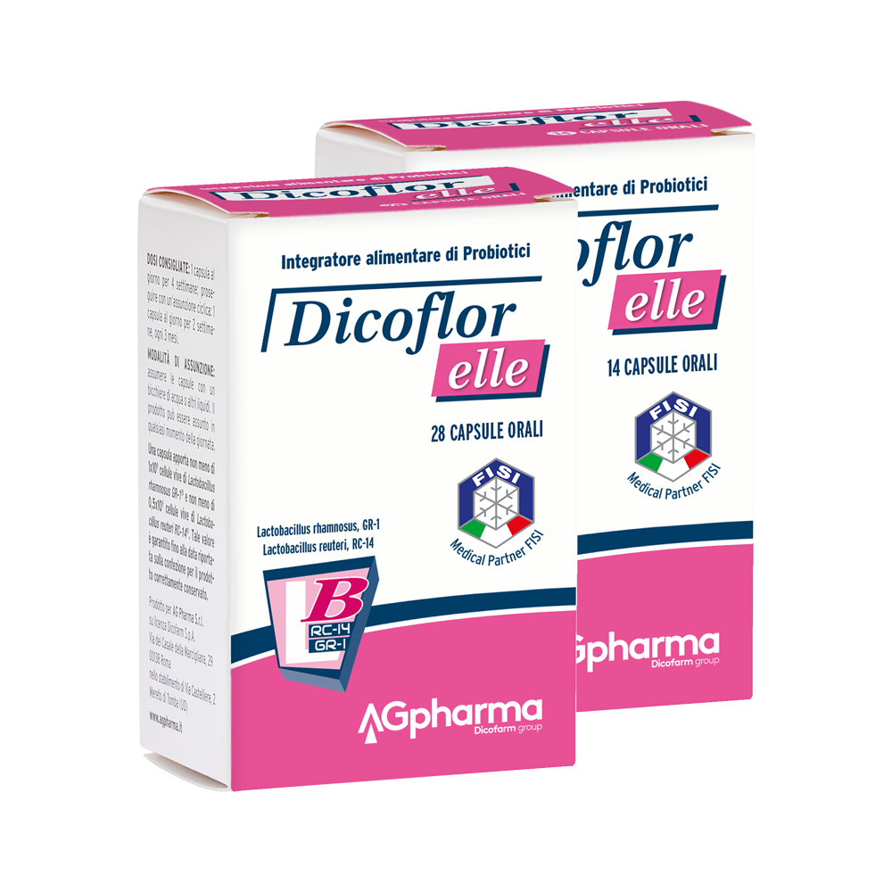 Dicoflor elle è un integratore alimentare di probiotici (Lactobacillus rhamnosus GR-1, Lactobacillus reuteri RC-14) in capsule orali, utile per favorire l’equilibrio della flora batterica intestinale, in particolare nella donna.